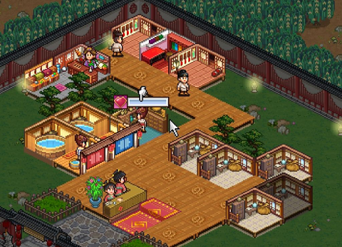 1、多種建筑任意搭配,清風(fēng)間、凌云間、書齋、浴堂,建造繁華的客棧時(shí)要注意房間的屬性搭配哦。