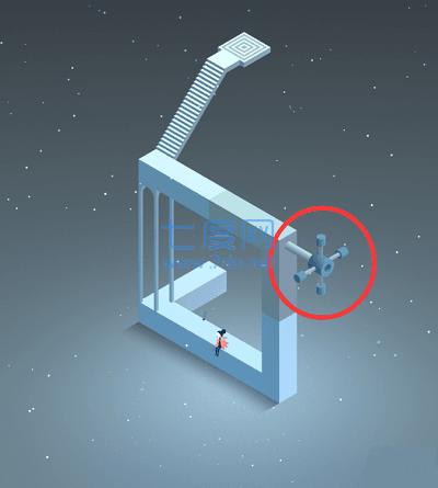 按下路徑,到達黃色按鈕,然后旋轉機關按鈕,將道路連成下圖位置,走到邊緣。