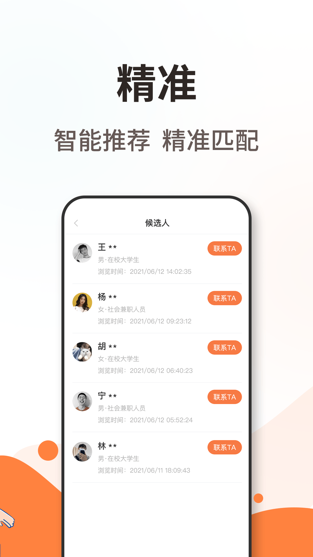 企業(yè)可以清晰瀏覽學(xué)生兼職簡歷,查看、錄取,操作流程便捷,切實(shí)解決企業(yè)兼職招聘效率低的痛點(diǎn);