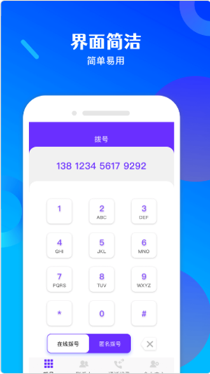 免費(fèi)電話寶:這一款軟件能夠模擬用戶打電話的情景,還可以給用戶提供超高清的語(yǔ)音通話,實(shí)時(shí)在線錄音,隱藏本機(jī)號(hào)碼保證用戶信息安全,十分實(shí)用的一款軟件。