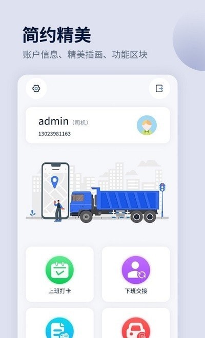 APP為道路貨物運(yùn)輸提供了便捷性,擁有3種角色權(quán)限(司機(jī)、司機(jī)管理者、車(chē)輛維修人員) 內(nèi)集成了上班打卡;