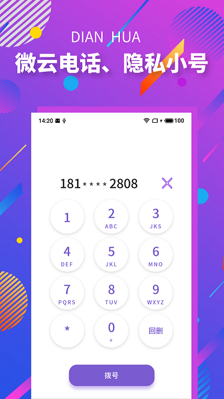 微云電話是一款非常好用的手機號碼隱藏軟件,使用這款軟件就能夠更好的幫助你對你的手機號碼隱藏啦,同時還能夠隱藏電話打電話給別人,他也不知道你的號碼哦,喜歡的小伙伴可以前來下載體驗哦。