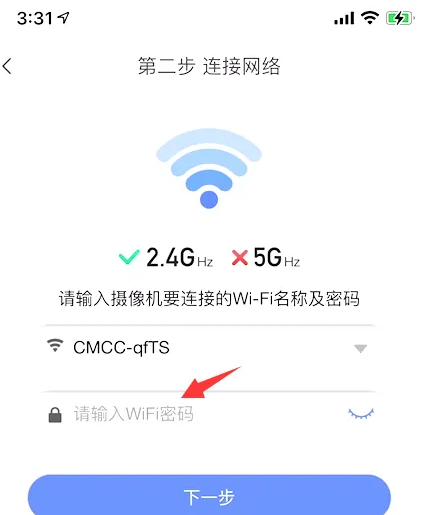 輸入無(wú)線密碼,點(diǎn)擊下一步按鈕即可綁定。