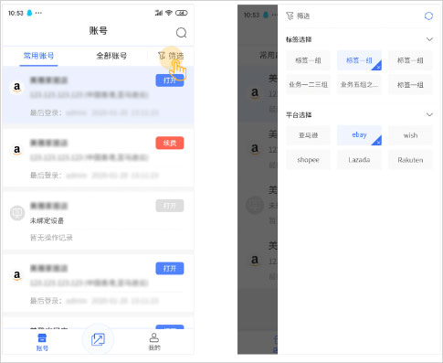 2、選擇平臺(tái)/賬號(hào)標(biāo)簽快速篩選賬號(hào)