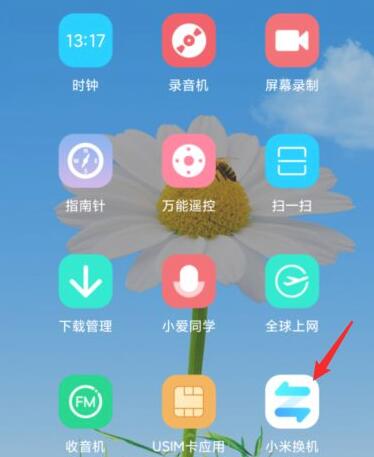 1.打開(kāi)小米手機(jī)進(jìn)入后,選擇小米換機(jī)的應(yīng)用。