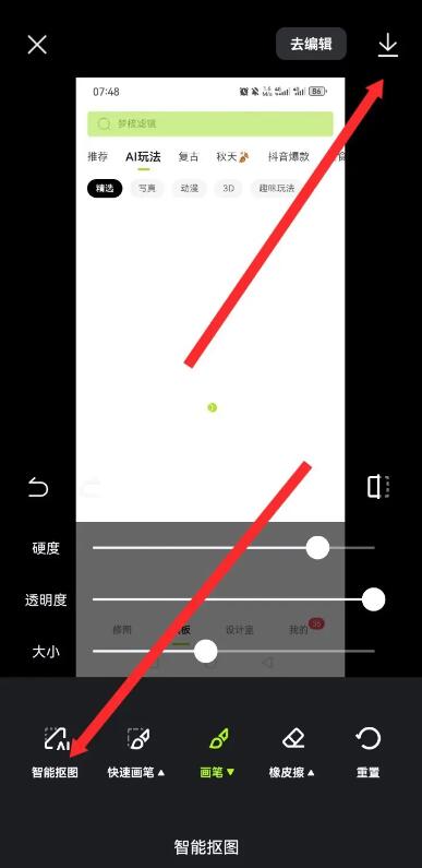 在彈出的頁面中,點(diǎn)擊下面的智能摳圖,點(diǎn)擊上面的下載圖標(biāo)即可。
