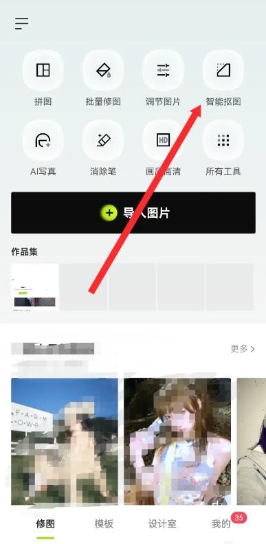 進(jìn)入手機(jī)的醒圖,點(diǎn)擊上面的智能摳圖選項(xiàng)。