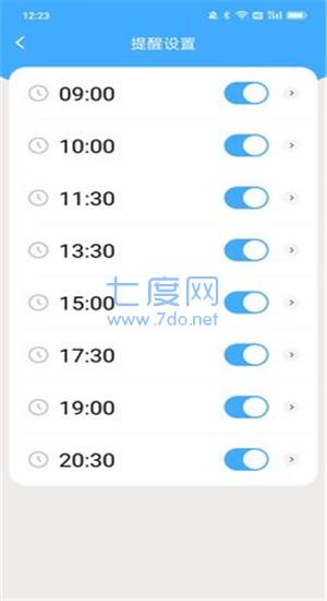 4、一天有八杯水。每杯水的打卡時間將被及時提醒,讓你喝八杯水。