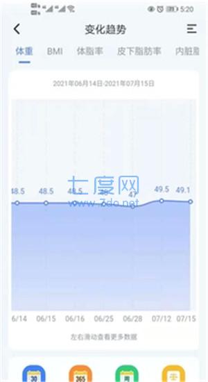 3、體重記錄:用戶可以在這里看到某一時間段中的體重波動記錄,查詢更直觀。