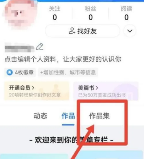 然后,在個(gè)人界面,點(diǎn)擊進(jìn)入作品集。