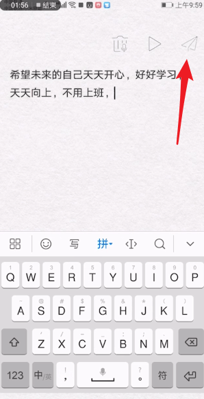 2、或者我們可以點(diǎn)擊右上角【語音】圖標(biāo),即可為信件【錄制音頻】;