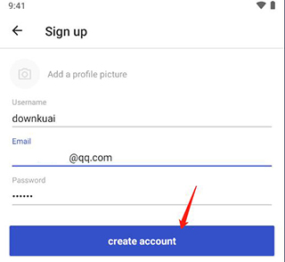 4、輸入用戶名、郵箱號、密碼,點擊create account進行注冊;