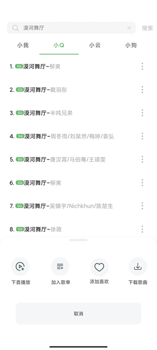 6、找到喜歡的歌曲,點擊右側(cè)的三個點按鈕,即可看到下載歌曲按鈕;