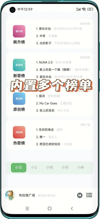 超齊全熱門音樂排行榜,讓你緊隨音樂潮流。眾多精品歌單可供選擇,并且支持同步小yun和小Q歌單。