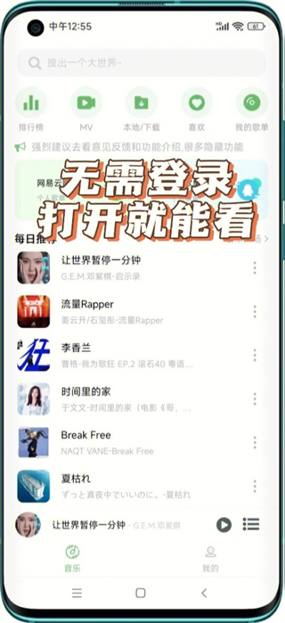 使用起來非常簡單,當(dāng)然就算不登錄賬號也是支持隨意聽歌。