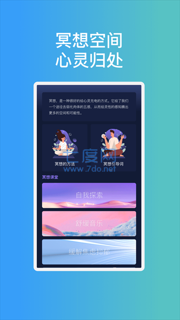 3、在這里去獲取多種冥想方法,讓自己好好的沉淀下來(lái)。
