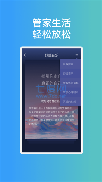 平臺(tái)還有冥想功能,我們可以更輕松的去了解到一些靜心的方法,實(shí)現(xiàn)心情放松,避免過(guò)于壓抑。