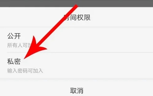 打開“房間權(quán)限”彈窗以后點(diǎn)擊“私密”