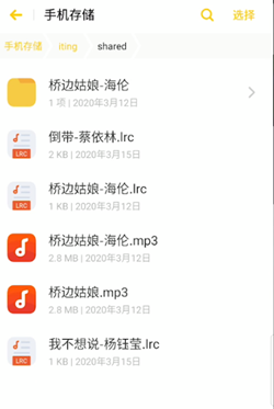 app下載的音樂(lè)在手機(jī)存儲(chǔ)iting文件夾的shared文件夾里面,
