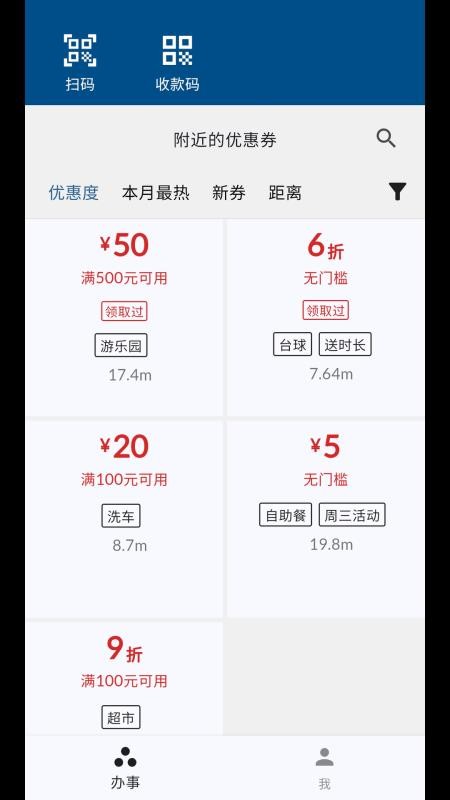 在線就能查看自己周邊的優(yōu)惠券,并能查看最新最熱門的優(yōu)惠,便于領(lǐng)取消費(fèi);