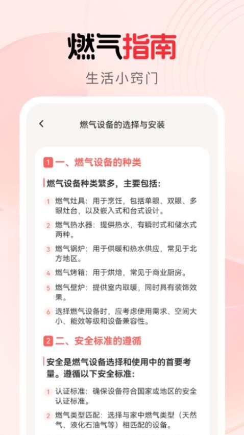 3、可以查看關(guān)于燃?xì)庵改系男≈R(shí),對(duì)生活中的小竅門都可以查看掌握,了解更多的燃?xì)庵R(shí)。