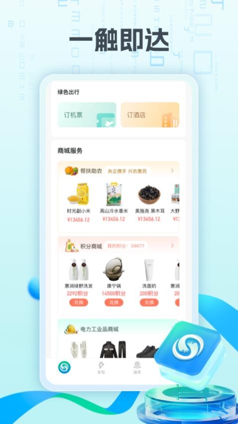 應(yīng)用內(nèi)容豐富,可以進(jìn)行電費(fèi)交費(fèi)、商城服務(wù)、出行服務(wù)等;