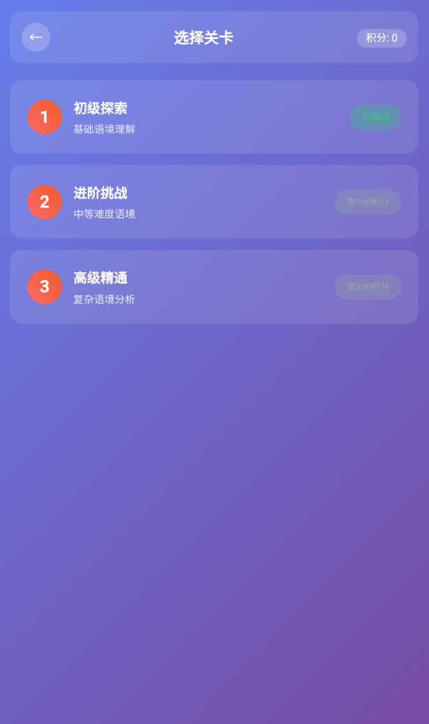 語境方舟軟件是一款語言學(xué)習(xí)軟件,帶來的是沉浸式的學(xué)習(xí)體驗。可以結(jié)合真實語言場景,為用戶提供個性化學(xué)習(xí)方案,可以更好的幫助大家提升語言能力。提供的是語言探索的學(xué)習(xí)方式,擁有不同的難度關(guān)卡,可以自由選擇。帶來的是趣味性的學(xué)習(xí)體驗,能夠幫助大家輕松克服語言學(xué)習(xí)難度。