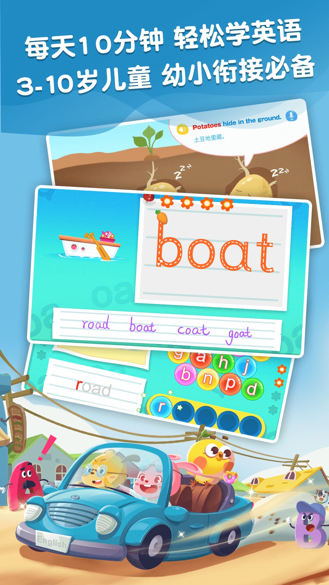 3、字母書寫與自然拼讀功能,結(jié)合26個(gè)字母與發(fā)音規(guī)則,提升拼讀與書寫水平。