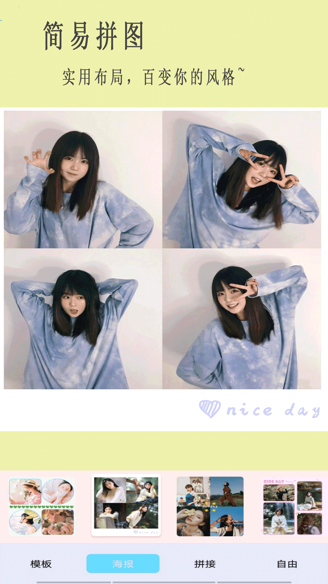 2、全新圖片濾鏡設(shè)置添加選擇獲取,各種簡(jiǎn)單圖片拼接組合模板效果推薦使用。