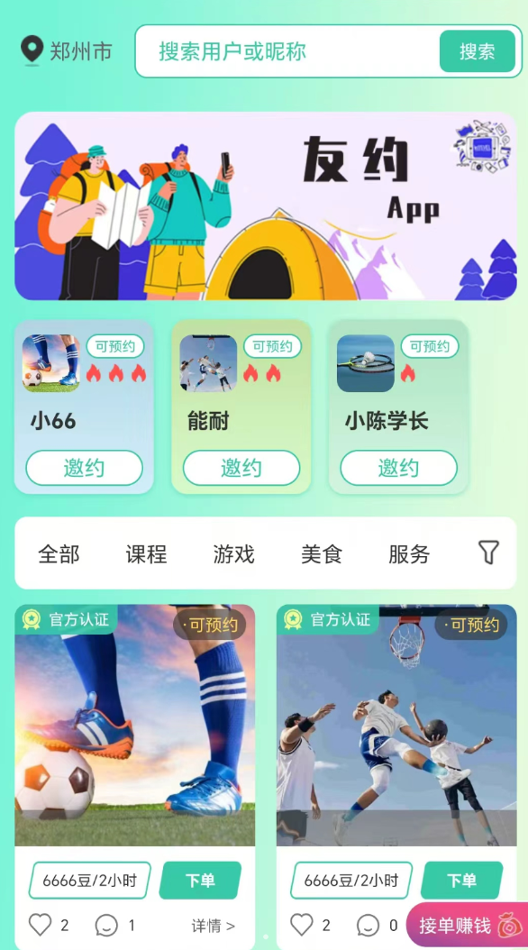 友玩官網(wǎng)版是一款安全有趣的社交互動平臺,這里能夠開啟年輕人的結(jié)伴新方式,帶來全新的社交體驗??梢噪S時在線約玩,交友會更加真實。這里有年輕人們喜歡的熱門的潮酷活動,可以直接參與,輕松體驗各種社交樂趣??梢钥焖倨ヅ渑d趣相投的伙伴,讓你能夠輕松告別孤單。活動內(nèi)容豐富,參與更加方便。