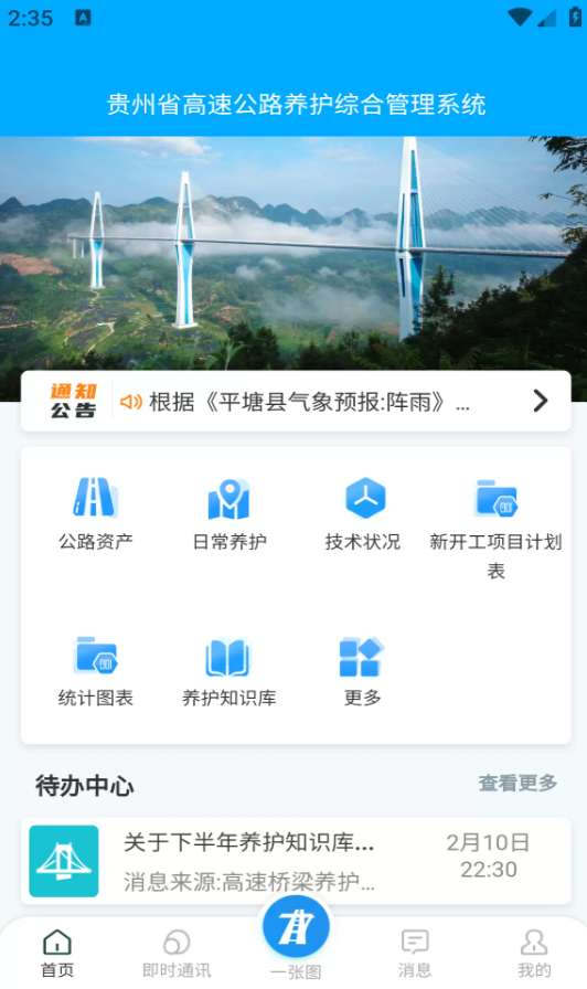 高速公路養(yǎng)護(hù)軟件是一款為高速上的公路養(yǎng)護(hù)管理打造的軟件,提供的是智能化管理服務(wù),高速公路日常養(yǎng)護(hù)會更加便捷,能夠高效進(jìn)行工作安排,提高養(yǎng)護(hù)人員的工作效率。提供的是全流程的養(yǎng)護(hù)服務(wù),幫助大家更好的掌握各種高速數(shù)據(jù)內(nèi)容。提供了即時通訊功能,可以隨時在線溝通工作問題,提高協(xié)作能力。