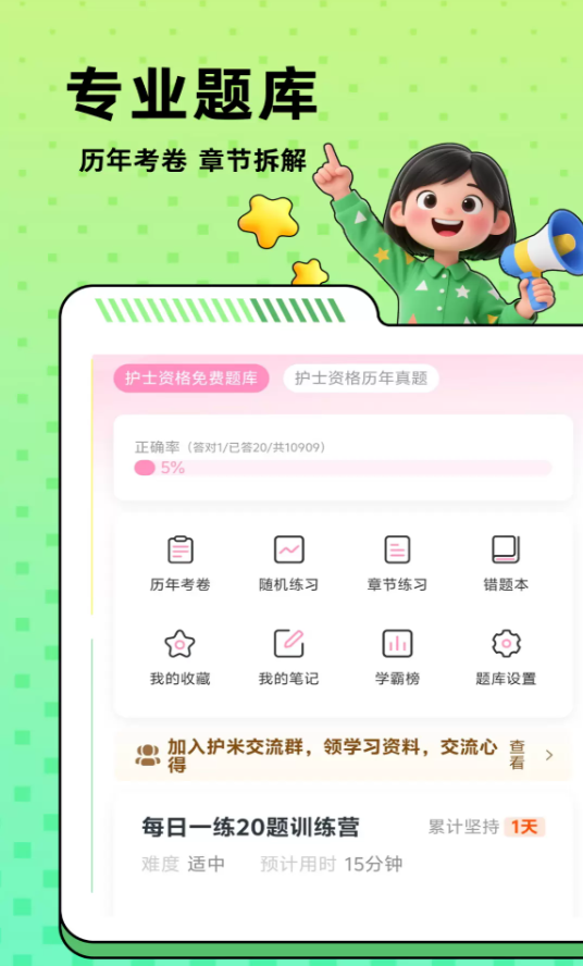 1、專為醫(yī)護類考試設(shè)計,聚焦護士資格、執(zhí)業(yè)藥師等核心考種;