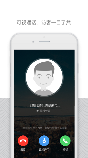 1、音視頻對講開鎖:訪客可以通過門禁發(fā)起呼叫,實現(xiàn)手機音視頻對講遠程開鎖;