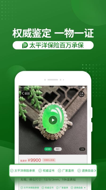 2、【品質(zhì)保障】與太平洋保險(xiǎn)公司簽訂百萬(wàn)保價(jià)協(xié)議,保證所有商品均為天然翡翠,均附帶國(guó)家權(quán)威機(jī)構(gòu)質(zhì)檢證書,支持全國(guó)復(fù)檢;