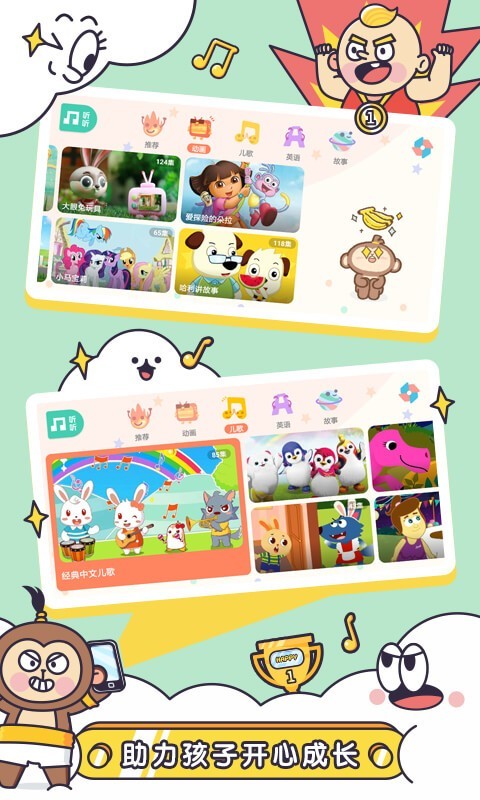 15000+音、視頻資源,經(jīng)典兒歌、英文啟蒙、熱門動(dòng)畫、詩詞國學(xué)、睡前故事全都有!