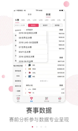 特色功能,各種趣味數(shù)據(jù),你可以獲得更加準確的電競比賽的數(shù)據(jù)分析。