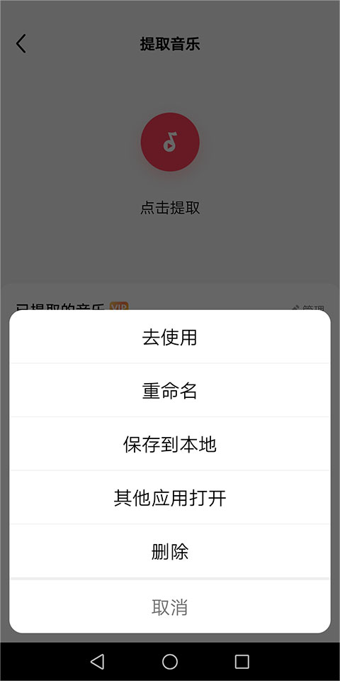 提取成功后,點擊提取出的音頻文件旁邊的功能菜單(如下圖所示,綠色箭頭所指)。