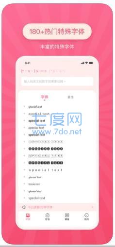 特殊字體是一款集成了各式字體、顏文字符號的應(yīng)用,您可以在應(yīng)用中選擇任意字體在社交平臺上使用,超酷、超可愛、超個性的字體、顏文字和特殊符號,可以在任何app中使用!